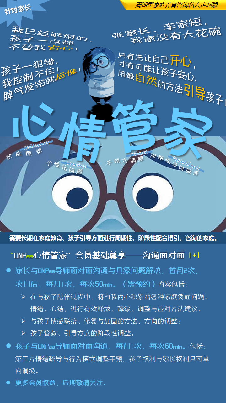 【心情管家】 针对家长( 包括:父母,但不包括祖辈。) 阶段式个案对接 |
