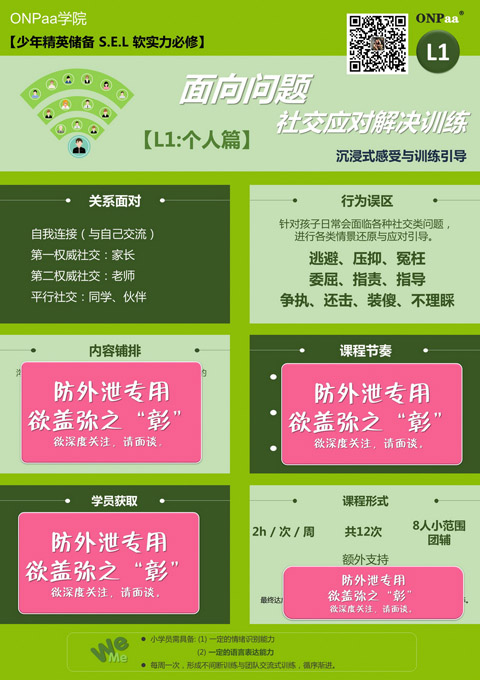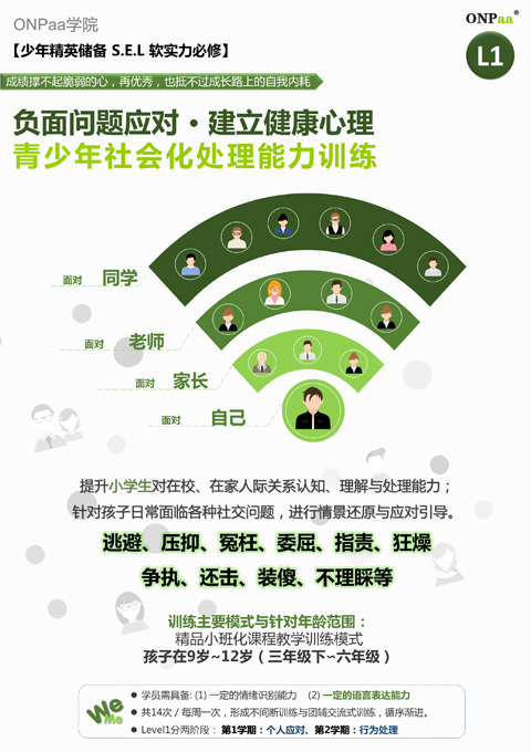 社交融入是个大方向。空谈误人。 从“人”这个角度出发,行为习惯基础性铺垫很重要!在ONPaa学院中,这叫行为基础塑形。 小学期间只有两阶。第三阶,是针对初一下学期学生。 慢慢的,我们一起长大。