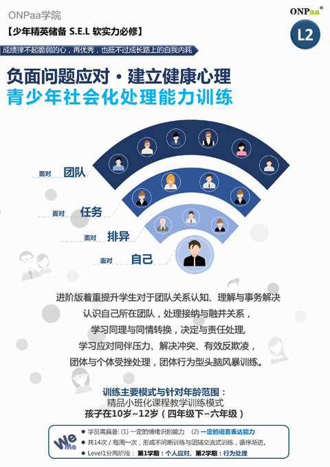 WeMe社交融入课程,帮助孩子,解决他们内心存在的针对于同学之间与老师之间与家长之间的行为障碍以及心理问题积淀,让他们学会自己调整自己的言行与表达方式去融入所需要的人际关系。