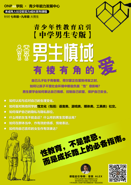 性教育,未雨绸缪, 语数外是标配。性教育与行为是变量,是未知数。 不让自己孩子输在成长的道路上。 不让别人的故事变成自己的事故[加油] 本课程仅是初中阶段男生。
