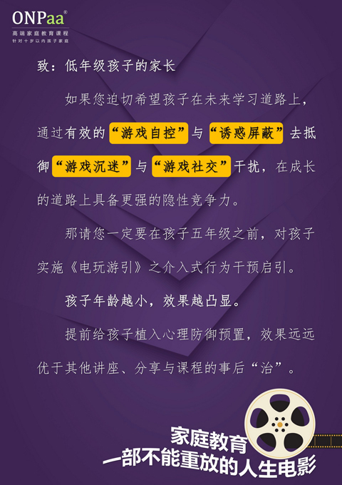 其最有效的干预方法是ONPaa学院【电玩游引】父母课程,且需家长提前干预介入。
